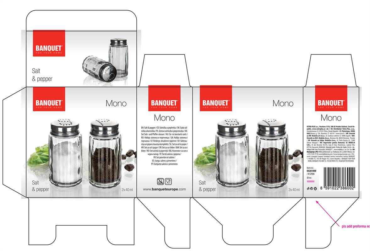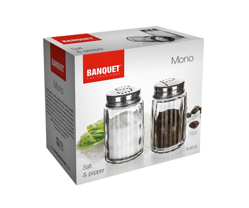 Zestaw sól i pieprz MONO, 2 szt. Wieczko: stal nierdzewna 18/0, grubość stali nierdzewnej 0,40 mm, korpus: szkło.