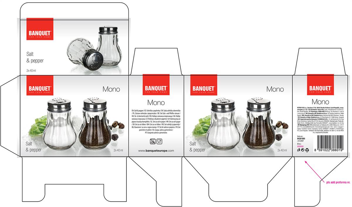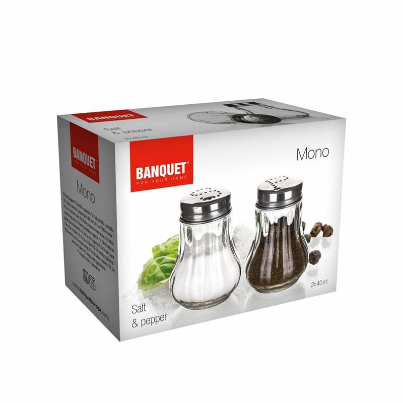 Zestaw sól i pieprz okrągły MONO, 2 szt. Wieczko: stal nierdzewna 18/0, grubość stali nierdzewnej 0,40 mm, korpus: szkło.