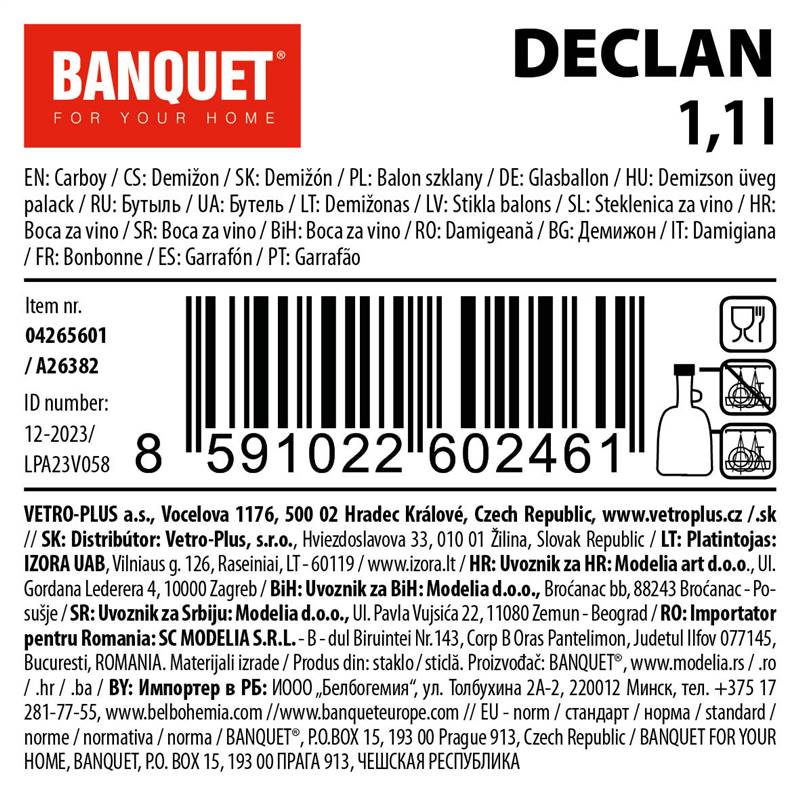 Butelka szklana z pokrywką DECLAN 1,1 l
