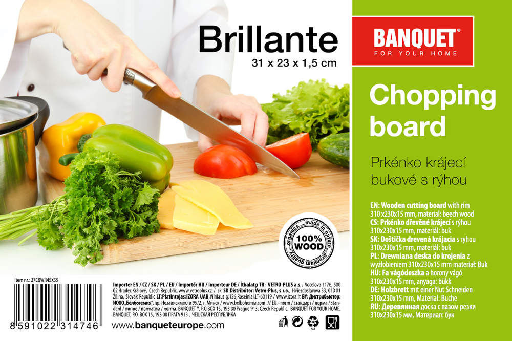 Drewniana deska do krojenia BANQUET Brillante, wymiary – 310 x 230 x 15 mm, materiał – buk, jakościowe wykonanie, wersja natur.