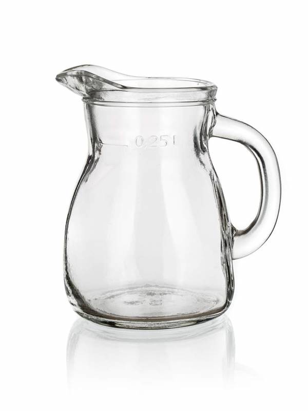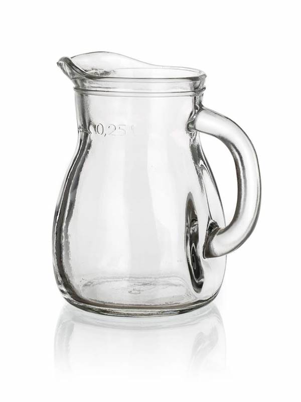 Klasyczny dzbanek BISTROT o objętości 250 ml wyprodukowany ze szkła przezroczystego jest odpowiedni do serwowania zimnych lemoniad, soków i innych napojów.