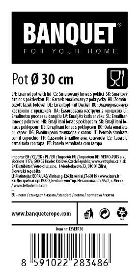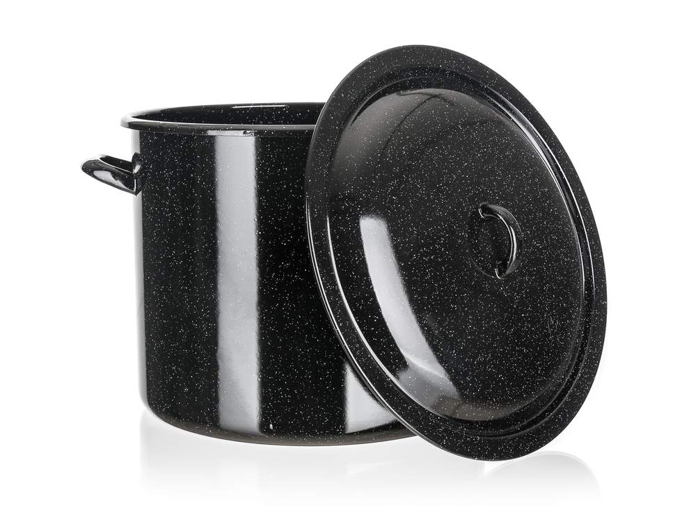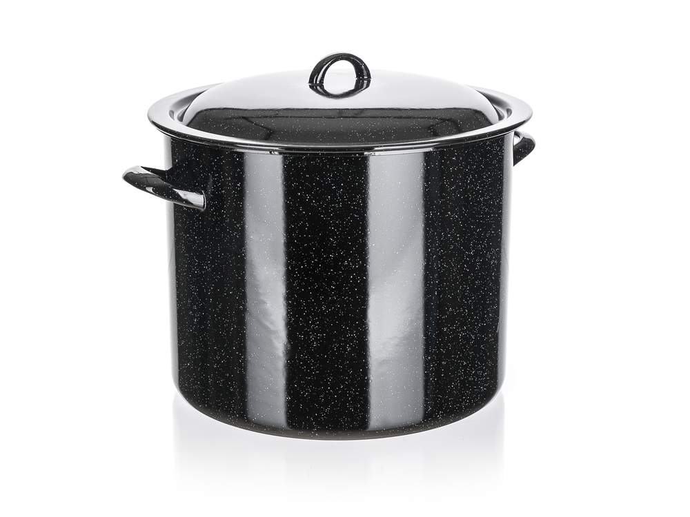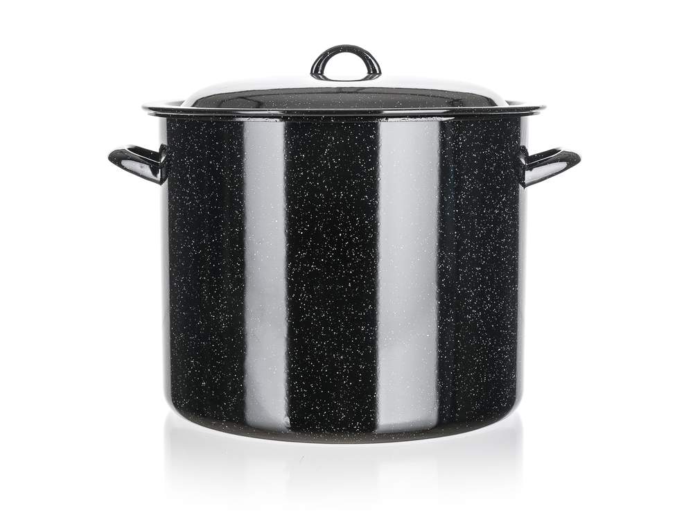 Garnek emaliowy z pokrywą 17 l, wymiary: średnica 30 cm, wysokość 24 cm. Garnek można stosować na wszystkich rodzajach płyt grzewczych oprócz indukcji.
