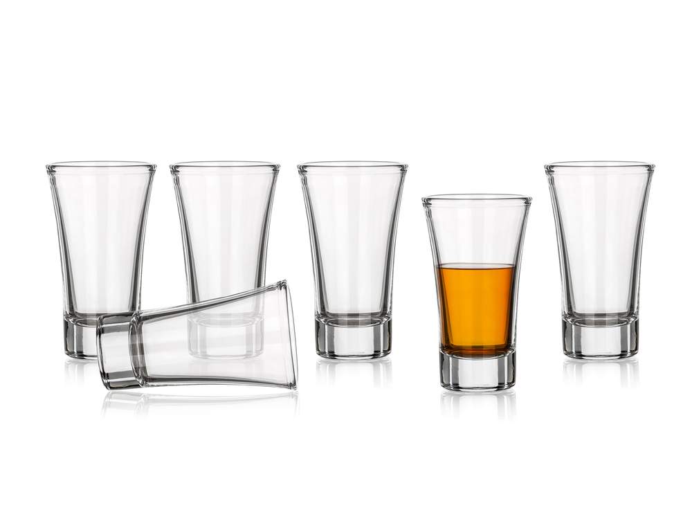 6częściowy zestaw kieliszków SYDNEY 40 ml składa się z przezroczystych kieliszków z grubszą ścianą, wysokość kieliszka 9 cm, średnica 4,7 cm.
