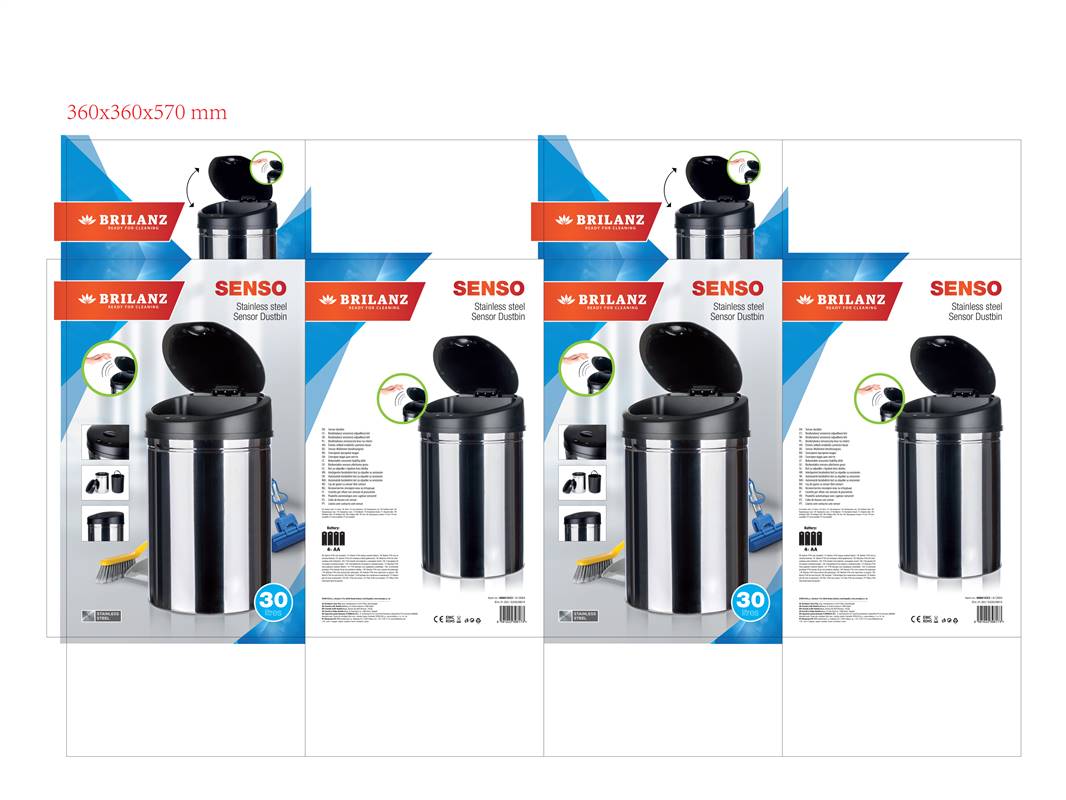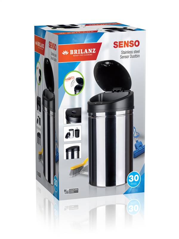 Kosz na śmieci SENZO 33 l to okrągły kosz bezdotykowy w wykonaniu ze stali nierdzewnej. Powłoka zewnętrzna – połysk, wewnętrzny pojemnik wyjmowalny na odpad jest wyprodukowany z tworzywa. Większość koszów na śmieci wymaga manipulację ręką lub nogą, ten jest wyposażony w czujniki kosz na śmieci jest bezdotykowy. Wieko kosza automatycznie się otwiera / zamyka, co odnosi walory higieniczne i praktyczne produktu. Produkt działa na zasadach fotoelektrycznych, jest bardzo niezawodny, wydajny i pracuje z niskim zużyciem energii.