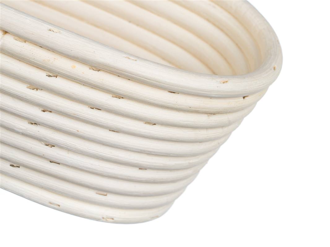 Owalny koszyk do chleba z naturalnego rattanu ze wzorem kłosa o wymiarach 26 × 13 × 9 cm jest przeznaczony do wyrastania chleba. Po użyciu zaleca się jedynie przetarcie wilgotną szmatką.