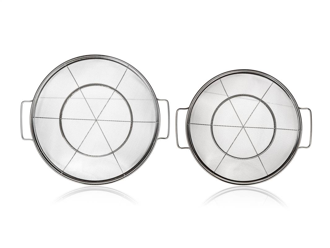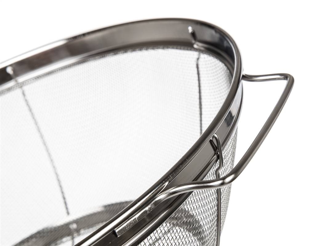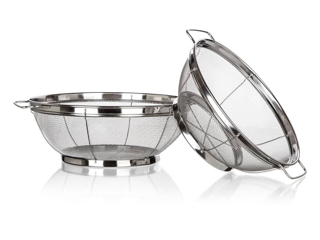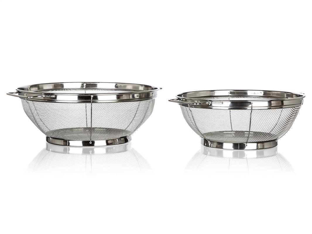 Zestaw sitek z podstawką AKCENT o średnicy 21,5 cm i 24,5 cm jest wyprodukowany z wysokiej jakości stali nierdzewnej 18/8. Sitko ze stali nierdzewnej z podstawką i uchwytami jest doskonałym i praktycznym pomocnikiem w Twojej kuchni podczas płukania owoców, warzyw lub cedzenia makaronów.