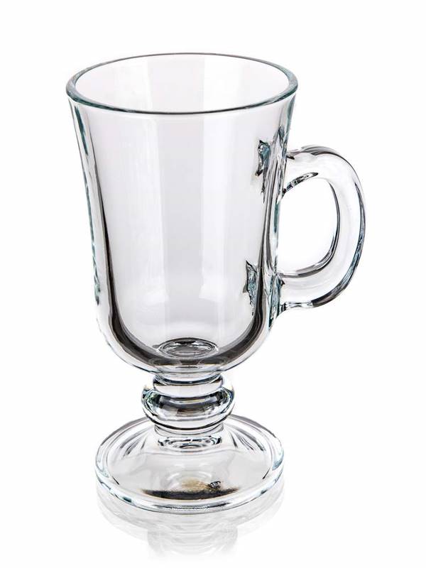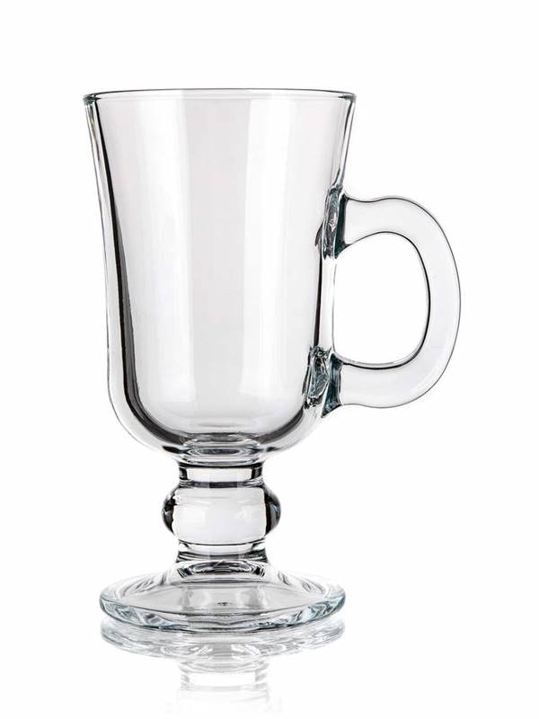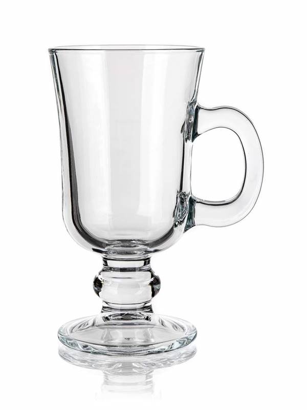 Zestaw szklanek IRISH COFFEE 230 ml, 2 szt., szklanki na nóżce z przezroczystą szklaną rączką do serwowania gorących i zimnych napojów. Wysokość szklanki to 14,6 cm, a średnica 7,6 cm. Szklanka jest przeznaczona do herbaty, kawy, kakao, napój będzie efektowny dzięki przezroczystemu szkłu.