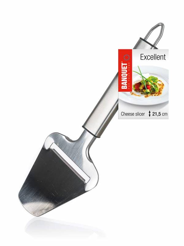 Krajarka do serów EXCELLENT 21,5 cm jest wyprodukowana ze stal nierdzewnej, ułatwi krojenie sera na plasterki o tych samych wymiarach. Krajarkę można wykorzystać także do twardego masła. Rękojeść jest wyposażona w praktyczne oczko umożliwiające zawieszenie.