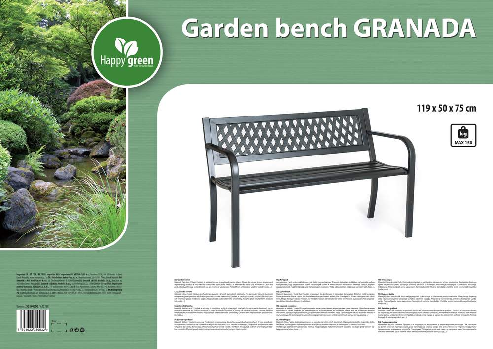 Ławka ogrodowa GRANADA jest wyprodukowana ze stali czarnego koloru. Wymiar ławki: 119 x 50 x 75 cm. Nośność ławki: 150 kg.