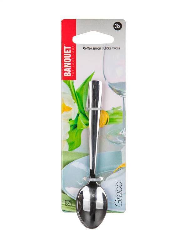 Łyżka mocca GRACE, 3 szt. Materiał: stal nierdzewna 18/0, lśniąca powłoka. Wymiary: długość 11 cm, grubość stali nierdzewnej: 2,00 mm, wykończenie powierzchni: mirror polish.