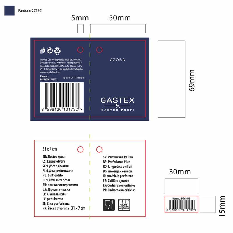 Łyżka z otworami AZORA 31 x 7 cm wyprodukowana ze stali nierdzewnej, przeznaczona do wykorzystania profesjonalnego i w gospodarstwach domowych. Łyżka jest wyposażona w praktyczne oczko umożliwiające zawieszenie, łatwo się utrzymuje, można myć w zmywarce do naczyń. Seria naczyń kuchennych GASTEX spełnia trudne wymagania profesjonalistów i jest przeznaczona także do wykorzystania w gospodarstwach domowych. Prosty i funkcjonalny design zapewnia ponadczasową oraz długą moralną i jakościową żywotność wszystkich produktów.