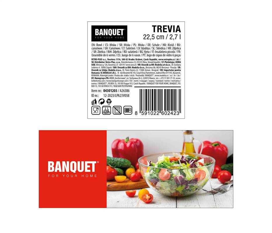 Miska szklana TREVIA 12,5 cm o pojemności 2,7 l ma szerokie zastosowanie w kuchni, jest odpowiednia nie tylko do przechowywania żywności, ale także do serwowania.