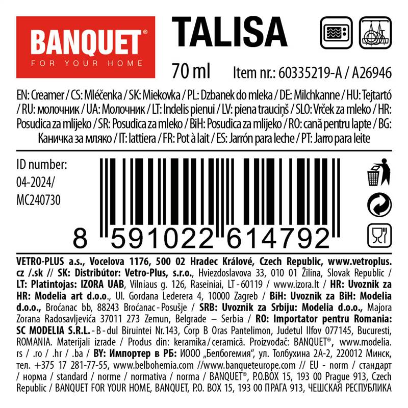 Dzbanek na mleko porcelanowy TALISA o pojemności 70 ml w kolorze białym przyda się przy serwowaniu kawy lub herbaty na co dzień i od święta. Dzbanek na mleko jest odpowiedni do mikrofalówki i do mycia w zmywarce do naczyń.