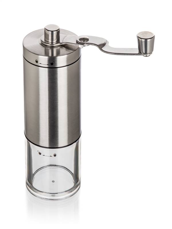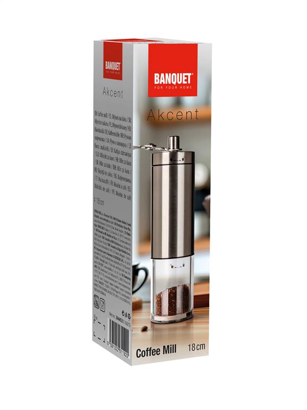 Mechaniczny młynek do kawy AKCENT 18 cm jest wykonany ze stali nierdzewnej i ma przezroczysty plastikowy pojemnik. Wewnętrzną część młynka tworzy ceramiczny mechanizm do mielenia z możliwością ustawienia grubości mielenia. Młynek do kawy, z którym zawsze możesz delektować się świeżo zmieloną kawą. Wymiary młynka: wysokość 18 cm, średnica podstawy 5 cm.