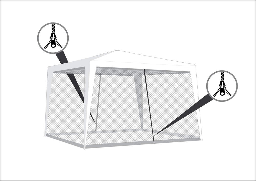 Moskitiera do altany ogrodowej 2 suwaki białego koloru, praktyczne przymocowanie do konstrukcji altany przy pomocy rzepów, 2 szt. w zestawie.