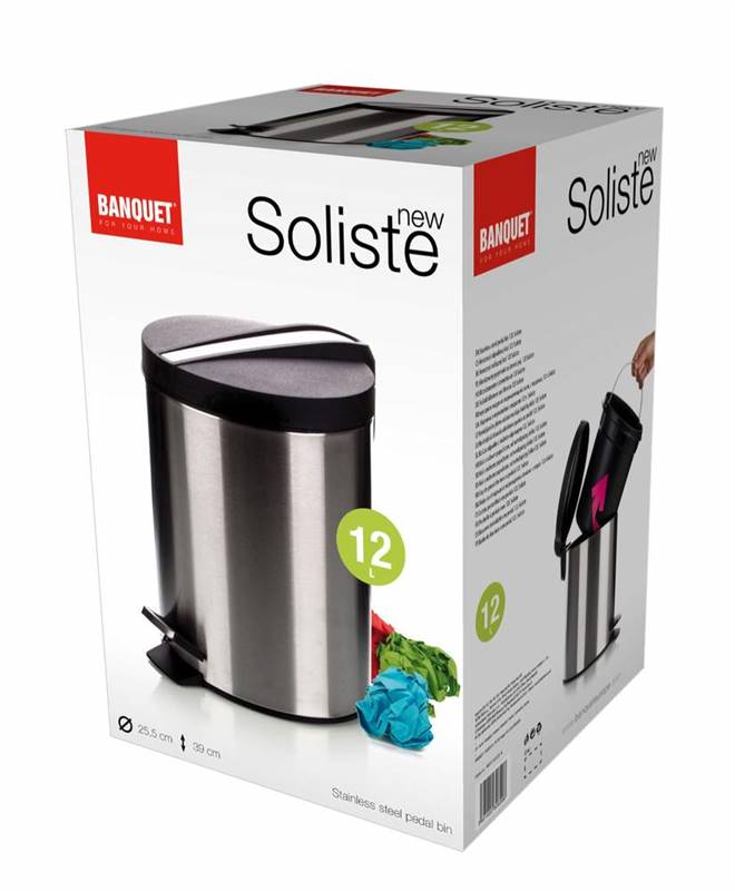 Kosz na śmieci SOLISTE 12 l, wykonanie ze stali nierdzewnej, powłoka matowa, wieko i wewnętrzny pojemnik wyjmowalny na odpad z tworzywa. Kosz ma system pedałowy do otwierania wieka ze względu na higieniczną manipulację.