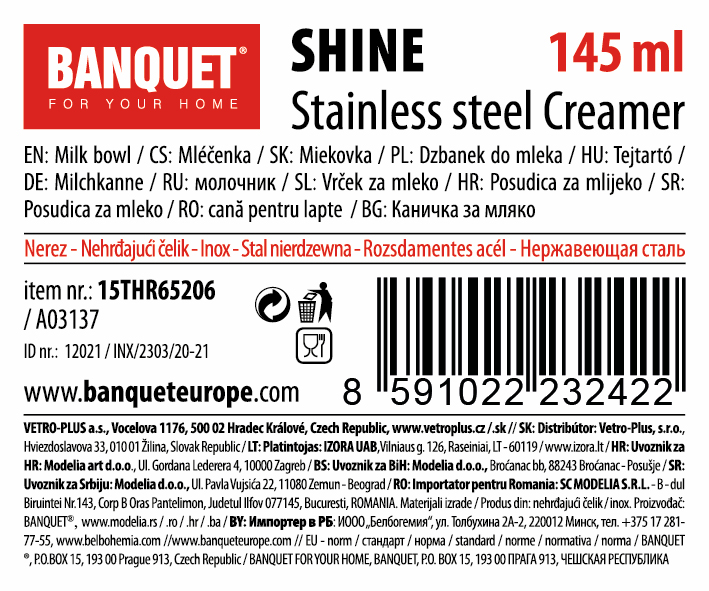 Dzbanek do mleka ze stali nierdzewnej 145 ml, wysokość dzbanka 6 cm, średnica 6 cm.