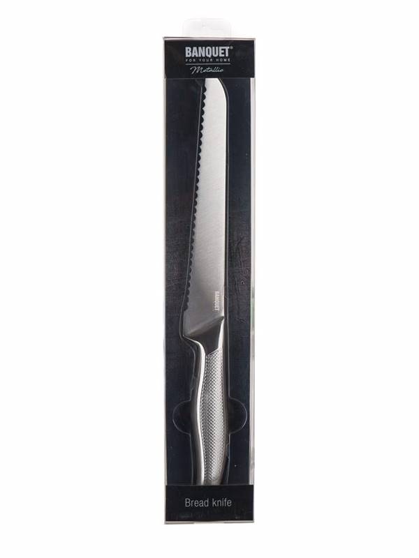 Nóż do chleba METALLIC 33,5 cm jest zrobiony z jakościowej stali nierdzewnej. Długość noża 33,5 cm, długość ostrza 20 cm. Nóż jest odpowiedni do codziennego wykorzystania.
