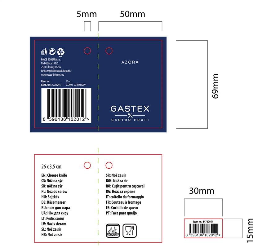 Nóż do sera AZORA 26 x 3,5 cm wyprodukowany ze stali nierdzewnej, przeznaczony do wykorzystania profesjonalnego i w gospodarstwach domowych. Nóż jest wyposażony w praktyczne oczko umożliwiające zawieszenie, łatwo się utrzymuje, można myć w zmywarce do naczyń. Seria naczyń kuchennych GASTEX spełnia trudne wymagania profesjonalistów i jest przeznaczona także do wykorzystania w gospodarstwach domowych. Prosty i funkcjonalny design zapewnia ponadczasową oraz długą moralną i jakościową żywotność wszystkich produktów.