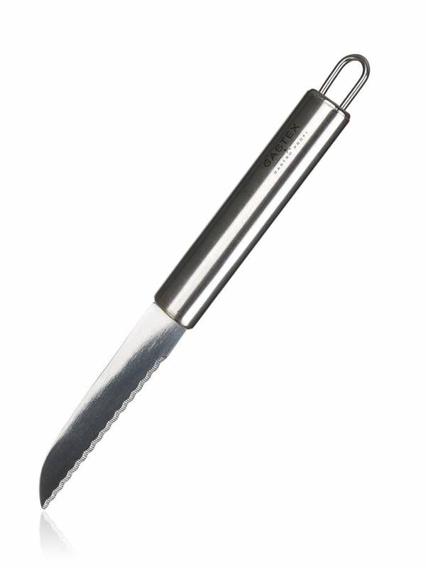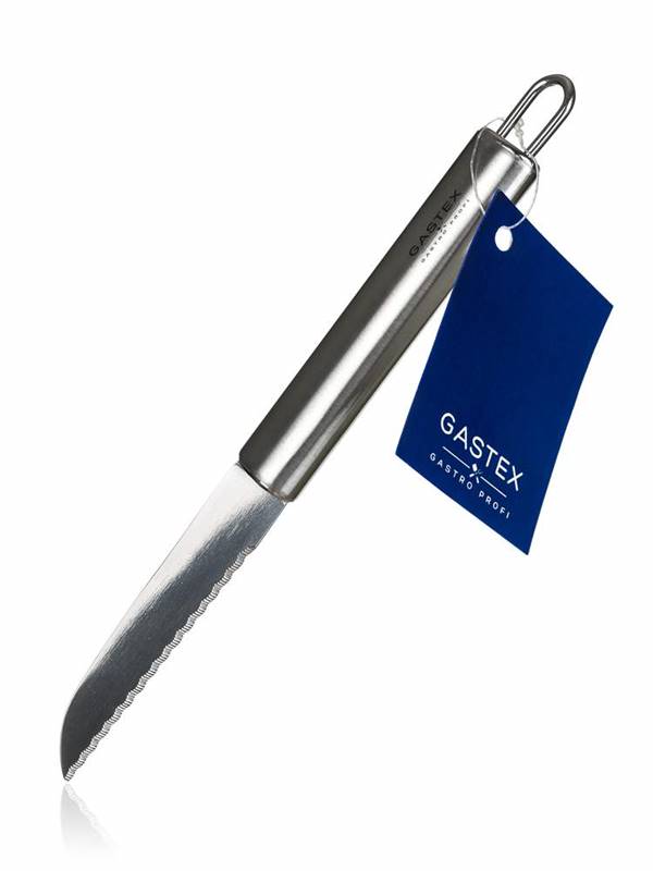 Praktyczny nóż AZORA 21,5 x 2 cm wyprodukowany ze stali nierdzewnej, przeznaczony do wykorzystania profesjonalnego i w gospodarstwach domowych. Nóż jest wyposażony w praktyczne oczko umożliwiające zawieszenie, łatwo się utrzymuje, można myć w zmywarce do naczyń. Seria naczyń kuchennych GASTEX spełnia trudne wymagania profesjonalistów i jest przeznaczona także do wykorzystania w gospodarstwach domowych. Prosty i funkcjonalny design zapewnia ponadczasową oraz długą moralną i jakościową żywotność wszystkich produktów.