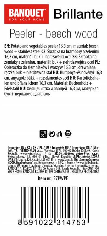 Skrobak do ziemniaków i warzyw 16,3 cm BANQUET Brillante, materiał: ostrze ze stali nierdzewnej, rączka z buku, wykonanie natur w jakościowym opracowaniu.