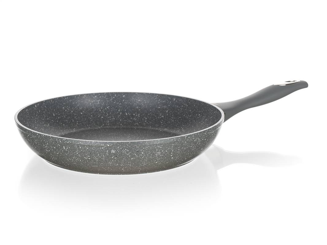 Aluminiowa patelnia lana kuta GRANITE GREY 28 x 5,3 cm z powłoką antyadhezyjną, szary wzór granitowy, grubość ściany 3 mm, rękojeść soft-touch. Powierzchnia nieprzylegająca jest bardzo twarda i wytrzymała na porysowania. Wysoka przewodność cieplna zapewnia szybkie i ekonomiczne gotowanie – długo trzyma temperaturę. Patelnia jest odporna na uderzenia i odkształcanie. Odpowiedni do wszelkich rodzajów płyt grzewczych łącznie indukcji.