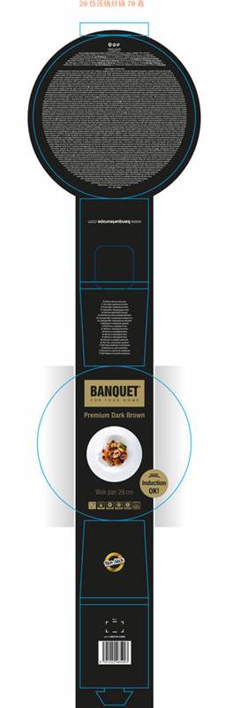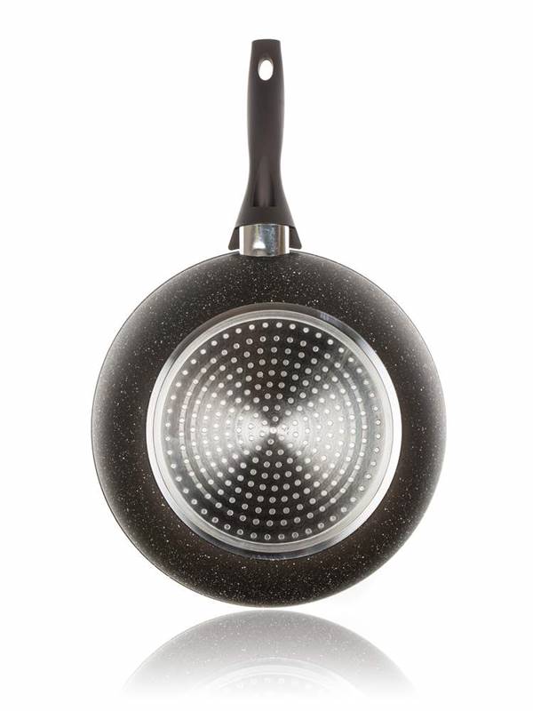 Kuta patelnia aluminiowa WOK PREMIUM DARK BROWN o wymiarach 28 x 7,8 cm, jest odpowiednia do przygotowania różnych potraw. Patelnia jest wyposażona w wewnętrzną 2warstwową powierzchnię nieprzywierającą Dyfon oraz wykończeniem żaroodpornym w strukturze brązowego marmuru. Patelnia ma dno indukcyjne oraz przeciwpoślizgową rękojeść soft touch.