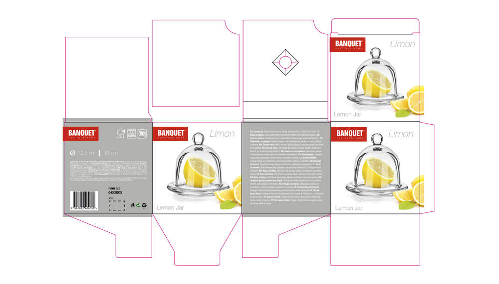 Szklany pojemnik na cytrynę LIMON chroni przed wysychaniem, stratą zapachu, pleśniami i owadami. Pojemnik można wykorzystać także do innych artykułów spożywczych, jak limonka, cebula, czosnek itp.