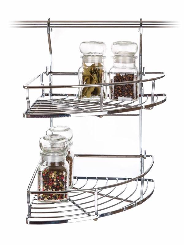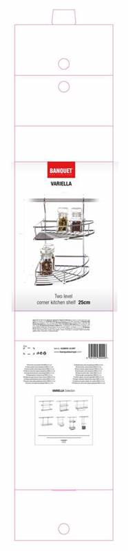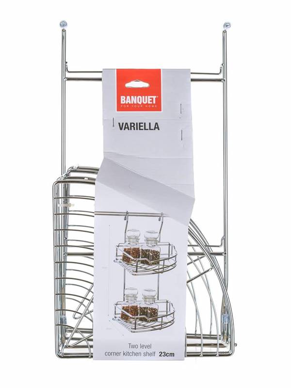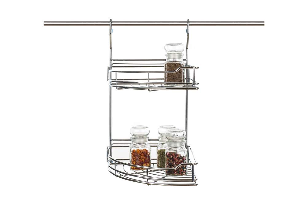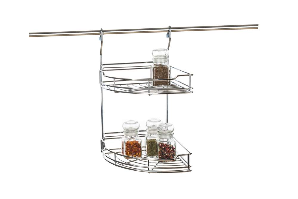 Półka do zawieszenia dwupiętrowa narożna VARIELLA o wymiarach 26,5 x 42 x 23,5 cm, jest wyprodukowana z chromowanego drutu stalowego. Produkt z kolekcji wiszącego programu drucianego umożliwia mieć wszystko w zasięgu wzroku i ręki.
