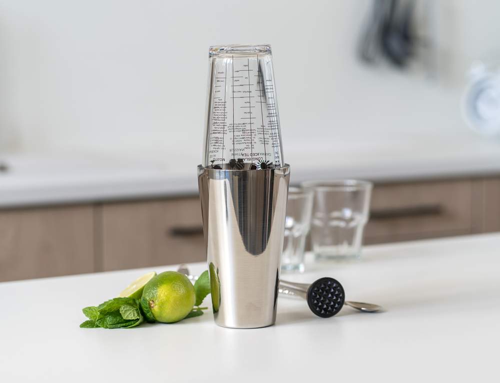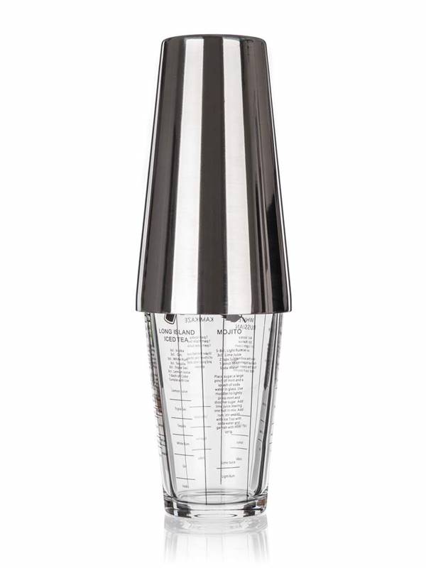 Szejker ze stali nierdzewnej do koktajli AKCENT jest odpowiedni do przygotowania mieszanych napojów alkoholowych i niealkoholowych. Objętość: część ze stali nierdzewnej 830 ml, część szklana: 450 ml. Wysokość: część ze stali nierdzewnej 16 cm, część szklana: 14,5 cm.