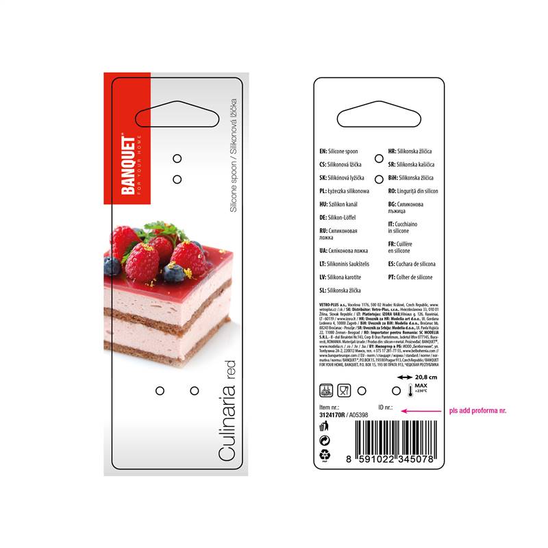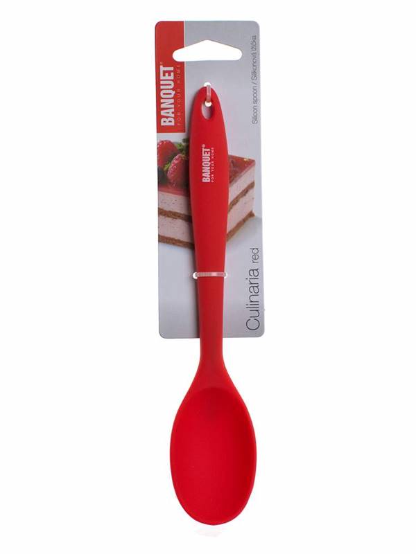 Łyżka silikonowa CULINARIA red, długość 20,5 cm, szerokość 4 cm, korpus z nylonu, powłoka silikonowa. Przeznaczone do zastosowania z produktami z powłoką antyadhezyjną. Można myć w zmywarce do naczyń. Silikon jest bardzo popularnym materiałem, który ze względu na swoje wyjątkowe właściwości, znalazł zastosowanie także w kuchni. Produkują się z niego różnego rodzaju formy do pieczenia, wałki i wałeczki do ciasta, pędzelki do smarowania, różne rodzaje naczyń