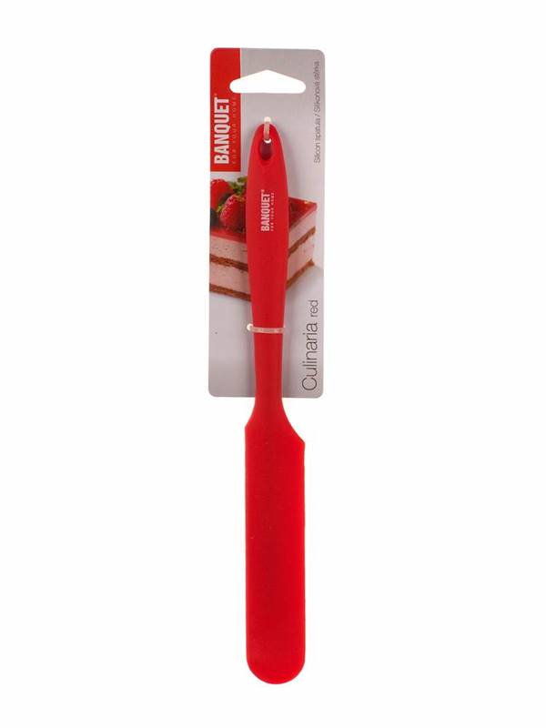 Szpatułka silikonowa 24,4 x 2,6 x 1 cm CULINARIA Red jest praktycznym pomocnikiem do rozcierania i mieszania kremów. Silikon jest żaroodporny (do 240 °C), rączka jest wyprodukowana z przezroczystego tworzywa czerwonego koloru. Silikon jest bardzo popularnym materiałem, który ze względu na swoje wyjątkowe właściwości, znalazł zastosowanie także w kuchni. Produkują się z niego różnego rodzaju formy do pieczenia, wałki i wałeczki do ciasta, pędzelki do smarowania, różne rodzaje naczyń kuchennych i wiele innych produktów.