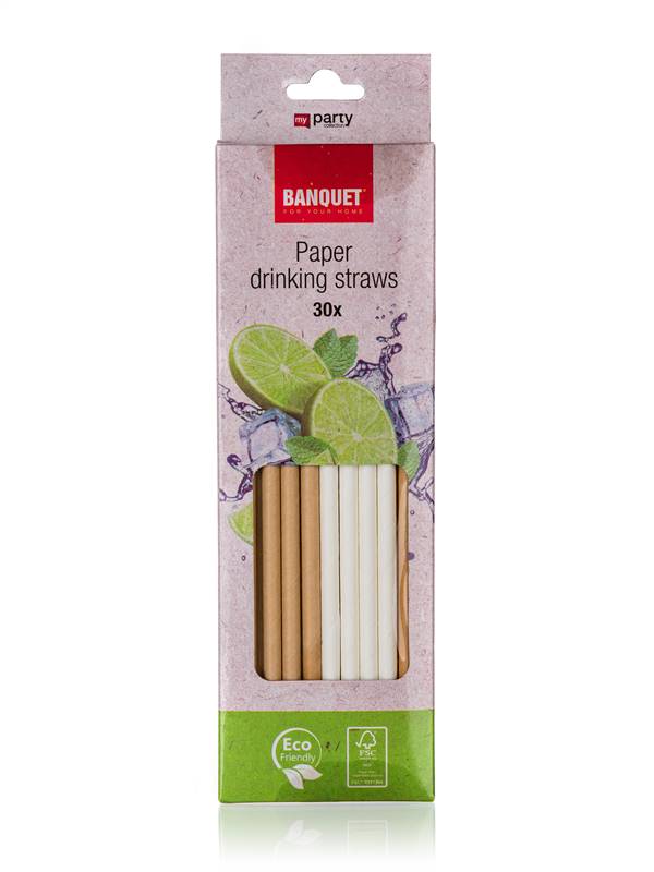 Słomki papierowe do napojów o średnicy 6 mm, długości 210 mm naturalnego koloru, są wyprodukowane z papieru ulegającego biodegradacji. Są idealne na imprezy urodzinowe, wieczorki i wesela. Zestaw zawiera 30 szt.,