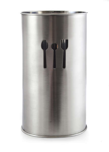 Stojak ze stali nierdzewnej do naczyń kuchennych, wysokość stojaka 18,5 cm, średnica 10 cm.