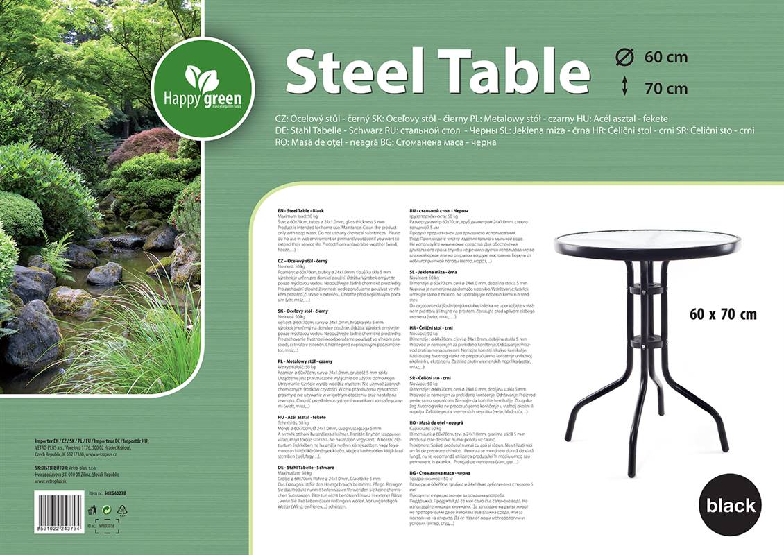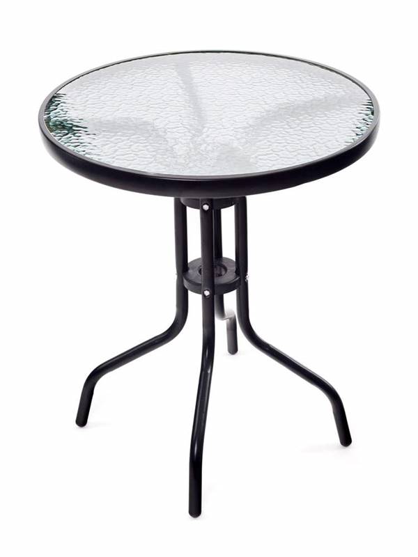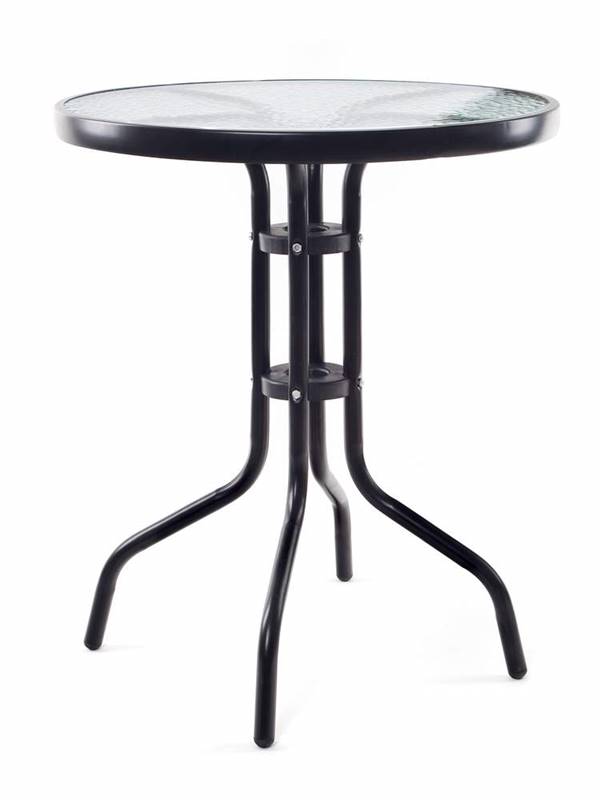 Stolik metalowy o średnicy 60 cm, wysokości 70 cm z blatem szklanym w czarnym wykonaniu jest odpowiedni wszędzie tam, gdzie potrzebna jest większa stabilna i równa powierzchnia. Stolik jest lekki, łatwy w manipulacji. Stolik można wykorzystać w ogrodzie, na tarasie lub balkonie.