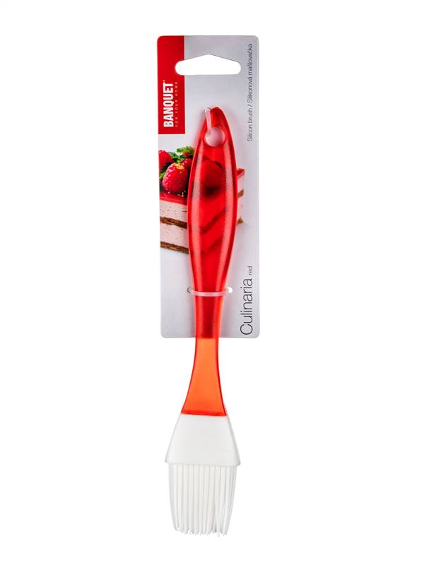 Pędzelek silikonowy 21 cm CULINARIA to pomocnik do prostego smarowania potraw podczas pieczenia i do grilla, szerokość 3,5 cm. Silikon jest wytrzymały na wysokie temperatury (do 230 °C), rączka jest wyprodukowana z przezroczystego tworzywa czerwonego koloru. Silikon jest bardzo popularnym materiałem, który ze względu na swoje wyjątkowe właściwości, znalazł zastosowanie także w kuchni. Produkują się z niego różnego rodzaju formy do pieczenia, wałki i wałeczki do ciasta, pędzelki do smarowania, naczynia kuchenne i wiele innych produktów.