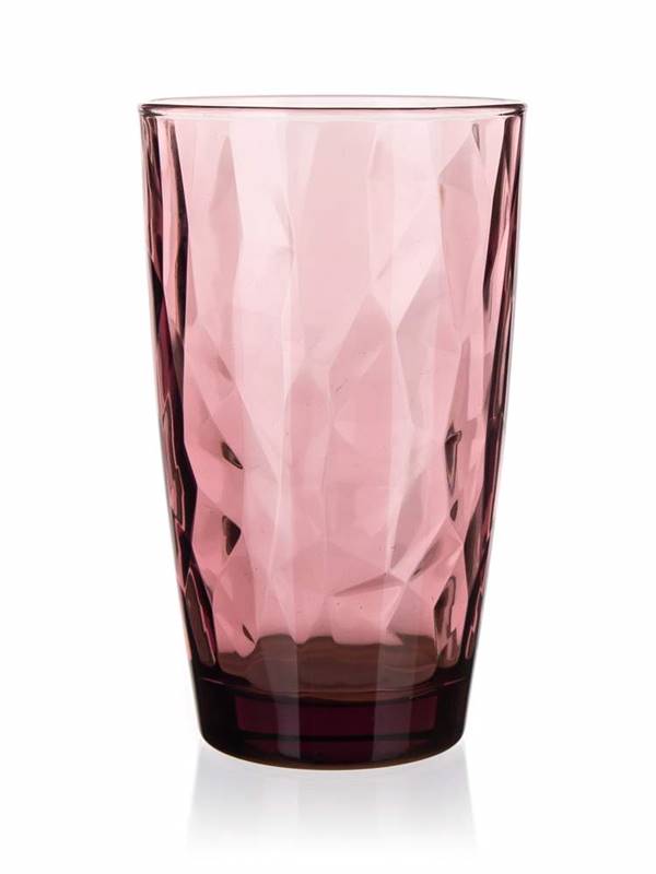 Filiżanka DIAMOND 470 ml, fioletowa, jest odpowiednia do serwowania szczególnie zimnych napojów. Szklanka zrobiona jest z jakościowego szkła i nadaje się do mycia w zmywarce do naczyń.
