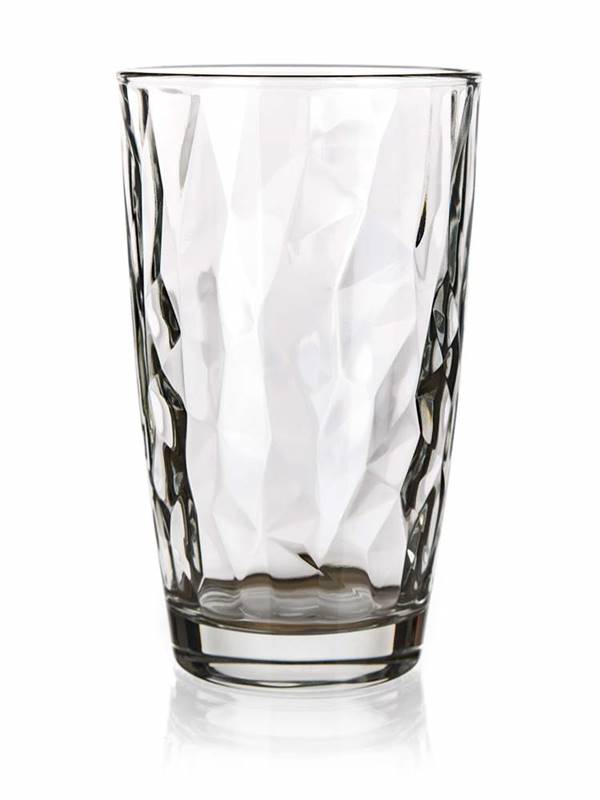Filiżanka DIAMOND 470 ml, przezroczysta, jest odpowiednia do serwowania szczególnie zimnych napojów. Szklanka zrobiona jest z jakościowego szkła i nadaje się do mycia w zmywarce do naczyń.