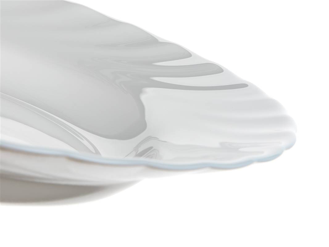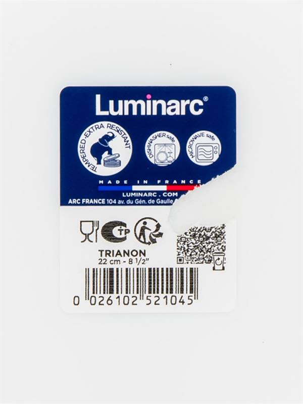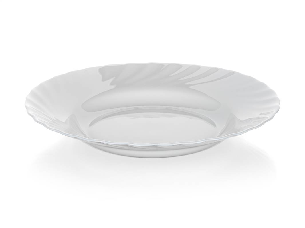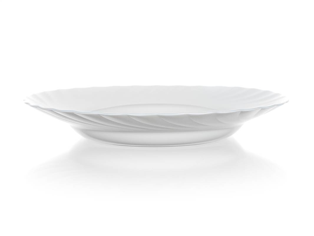 Talerz głęboki 22,5 cm TRIANON odpowiedni do serwowania potraw, wykonany z hartowanego szkła w kolorze białym, które może być używane w kuchence mikrofalowej i zmywarce do naczyń. Talerz charakteryzuje się dużą odpornością na zarysowania, ścieranie, szok termiczny, jest nieporowaty, dzięki czemu zapobiega gromadzeniu się bakterii i w 100 % nadaje się do recyklingu.