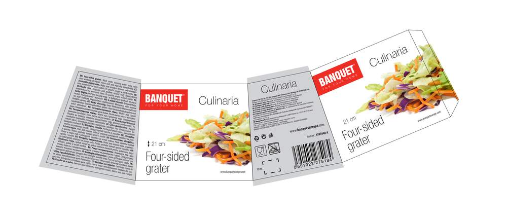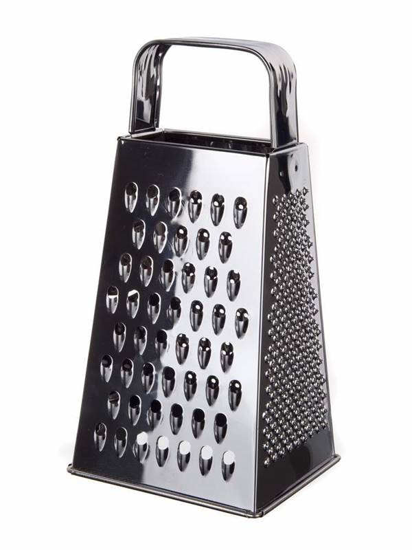 Tarka ze stali nierdzewnej 4stronna VIENTE w standardowym wykonaniu w kształcie litery A, długości 11 cm, szerokości 9 cm, wysokości 21,5 cm. Tarka jest podczas pracy stabilna i łatwo się czyści.