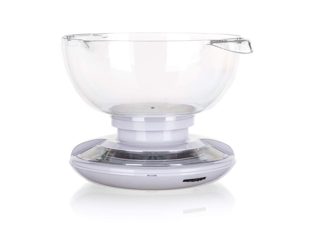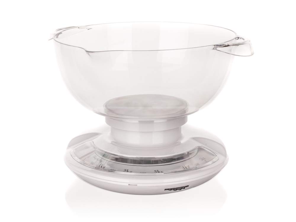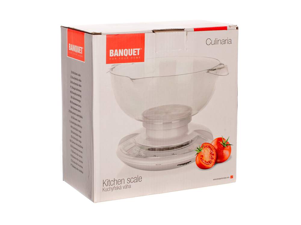 Mechaniczna waga kuchenna 5 kg CULINARIA, objętość misy 2 L, materiał: tworzywo ABS korpus (kolor biały), misa tworzywo przezroczyste. Obciążenie maksymalne 5 kg, rozdzielczość 50 g. Wymiar: 20 x 21 x 17 cm, masa 525 g.