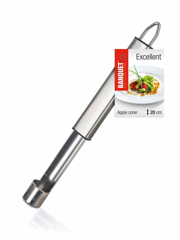 Wykrawacz gniazd jabłecznych EXCELLENT 20 cm ze stali nierdzewnej. Rękojeść jest wyposażona w praktyczne oczko umożliwiające zawieszenie.